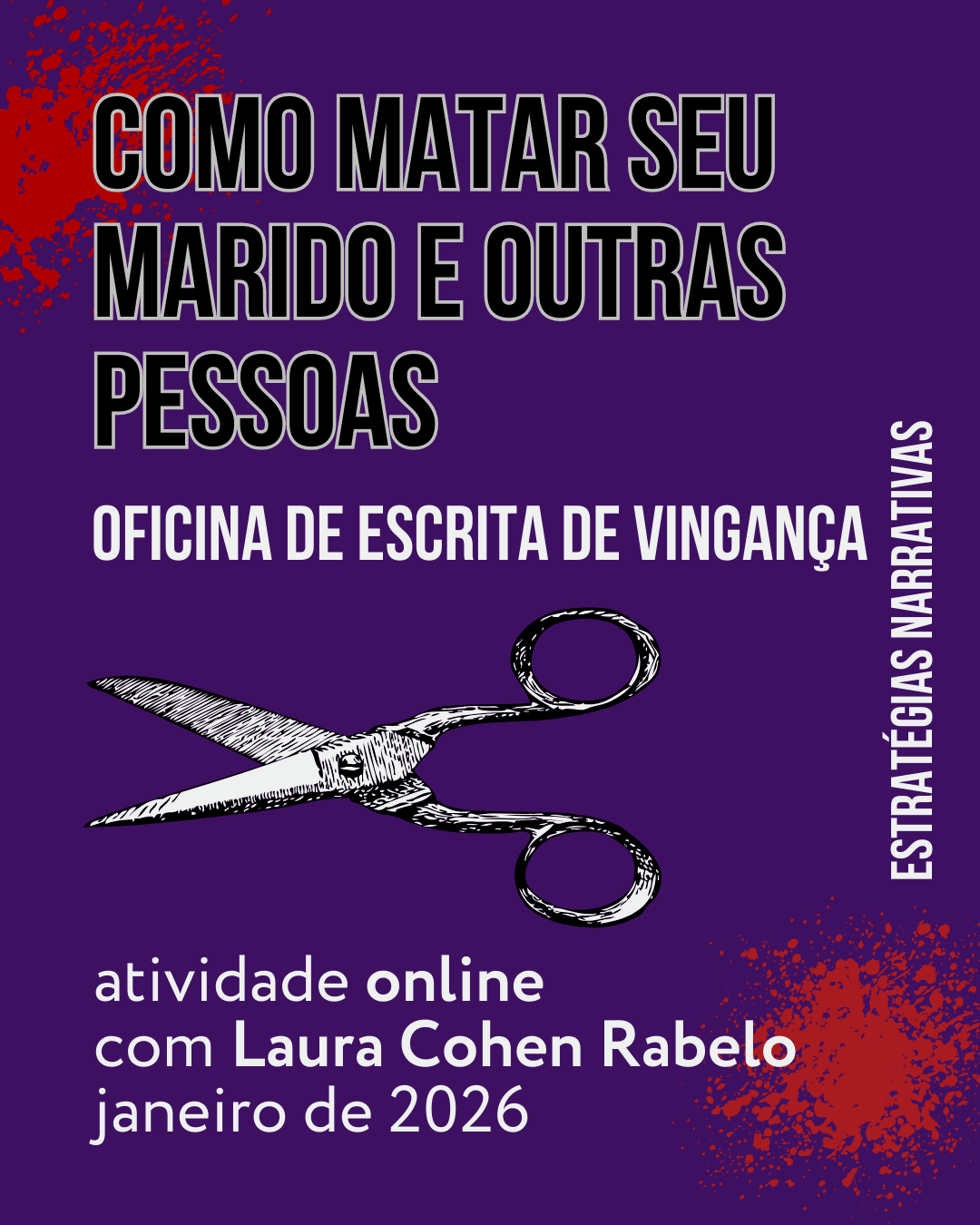 Em março, vou dar o repeteco da minha oficina COMO MATAR SEU MARIDO E OUTRAS PESSOAS online no Estratégias Narrativas.